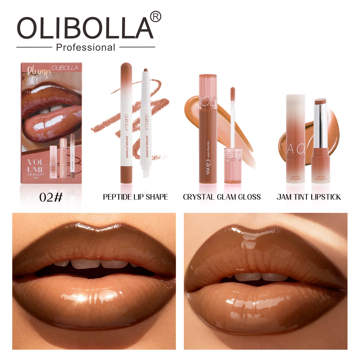 OLIBOLLA Three-Shade Makeup Set: Matte Lip Liner + Hydrating Lip Gloss